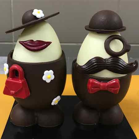 Entièrement moulé et monté à la main, ce couple en chocolat noir de dégustation et chocolat blanc fera un présent différent et décalé pour gâter votre moitié pour la fête des amoureux 2020.