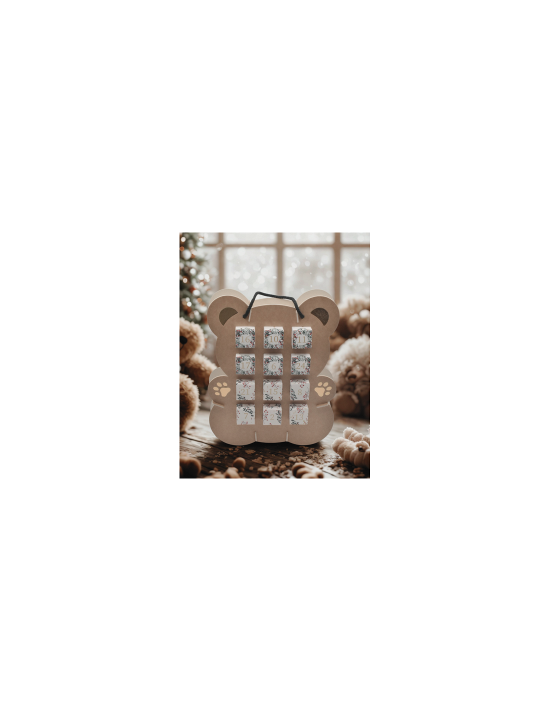 Découvrez chaque jour un nouveau bonbon de chocolat noir ou au lait en perçant une case de ce beau calendrier de l'Avent aux motifs de Noël.