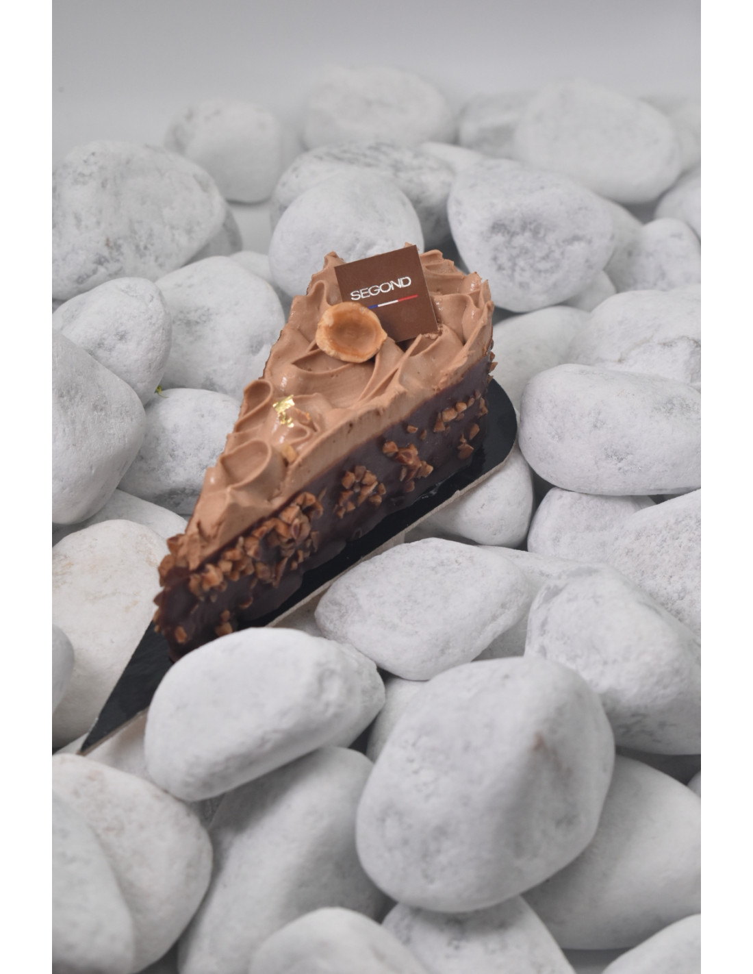 Sur une pâte sucrée au cacao, ganache chocolat noir : Madagascar 80% et Equatorial 55%.