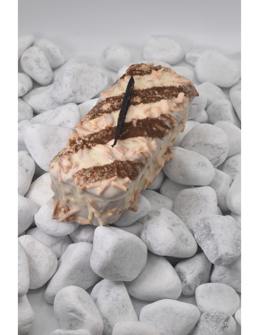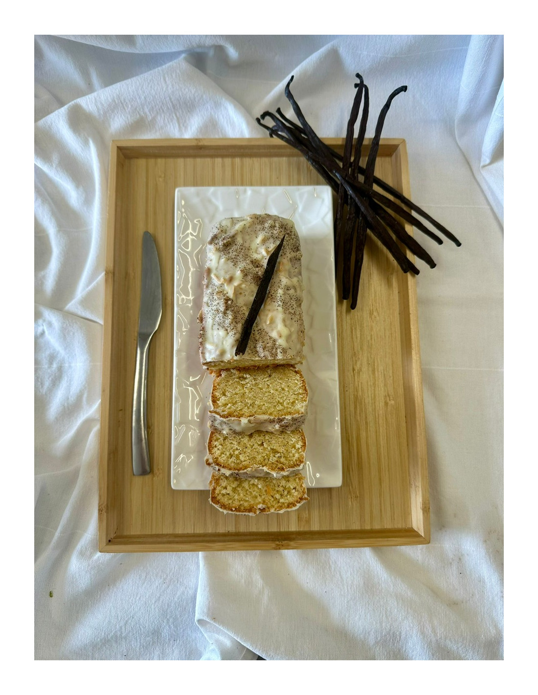 Délicieux cake à l'amande intense avec un son glaçage et à la vanille de Madagascar.