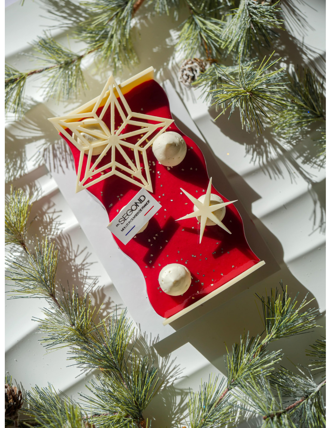 Cette superbe bûche immaculée sera du plus bel effet sur votre table en fête.